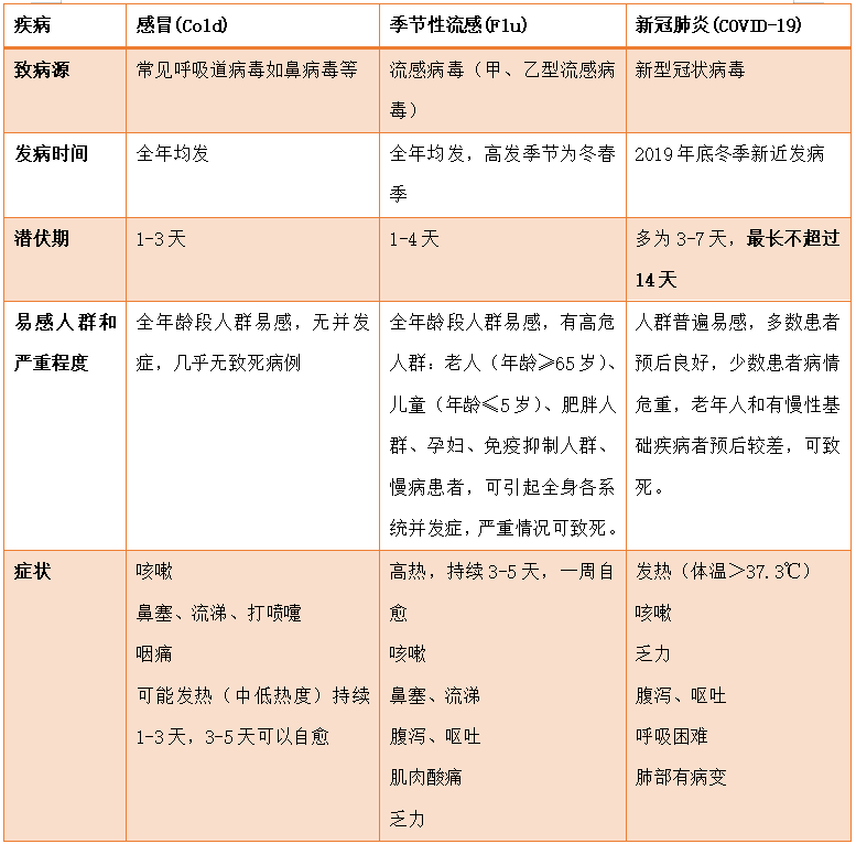 如何鉴别普通感冒、流感和新冠肺炎
