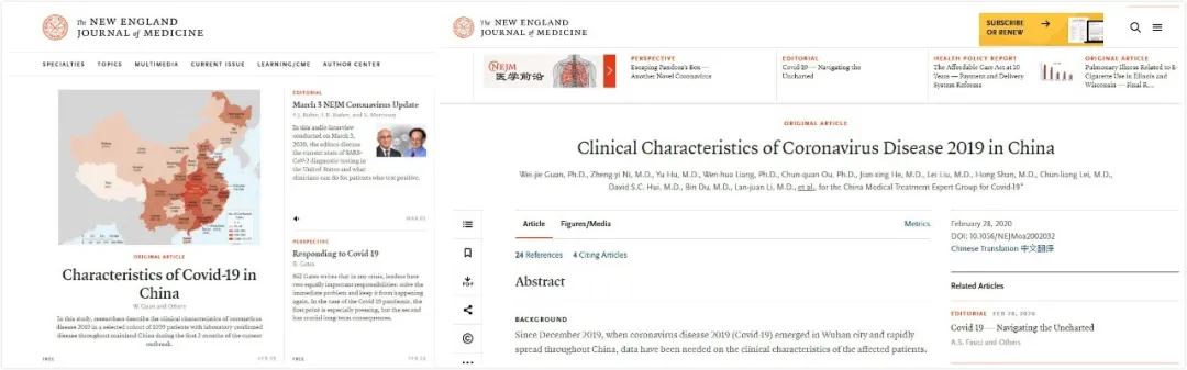 图5 新冠论文成为《新英格兰医学杂志》浏览量最高、广泛致信交流、广泛被各界媒体采访报道的重点推介