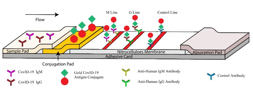 图1. SARS-CoV-2 IgM-IgG联合抗体检测试剂设计的示意图
