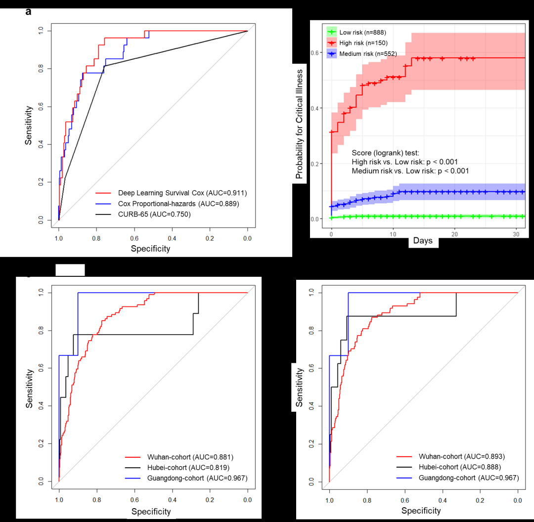 此项研究基于人工智能深度学习所建立的生存模型,对COVID-19患者入院时的10项临床特征进行分析,可以帮助预测患者发展至危重病情的风险,如在患者住院期间持续采用此模型进行分析,预测结果会更加准确,有助于监测患者住院期间的风险趋势。