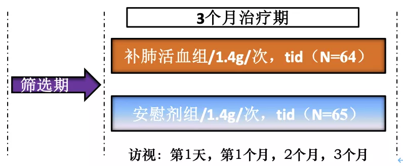 本研究共随机入组了131例新型冠状病毒肺炎出院患者(年龄19-83岁),按照1:1随机分配到补肺活血胶囊组和安慰剂组,治疗三个月。本研究的主要目的是评价补肺活血胶囊用于治疗新冠病毒肺炎康复期患者的有效性及安全性。主要疗效指标为六分钟步行距离及疲劳评分。本项目历时一个半月完成所有病例的入组,四个月完成所有病例出组,12月4日完成数据揭盲。目前研究结果正在进行整理分析