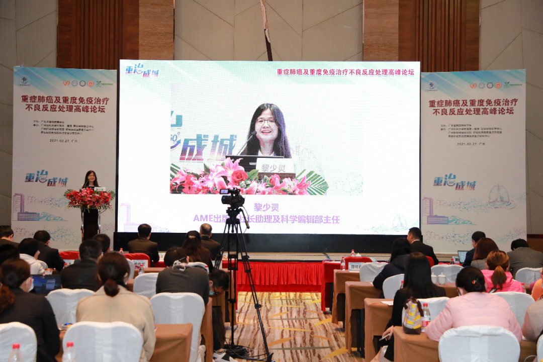 AME出版社社长助理及科学编辑部主任黎少灵代表AME出版社致辞。她为大家介绍了《重症肺癌》(Sever Lung Cancer)特刊一年来的组建和撰写过程,对参与本项目的国内外专家表示了诚挚的感谢;对《气管外科》中文版书籍的同期发布表示了热烈的祝贺。同时,对于同日启动的《重症肺癌国际专家共识》和《气管肿瘤》特刊合作计划表示期待和祝福。