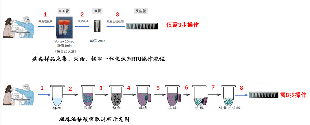 RTU与磁珠法提取操作流程对比图