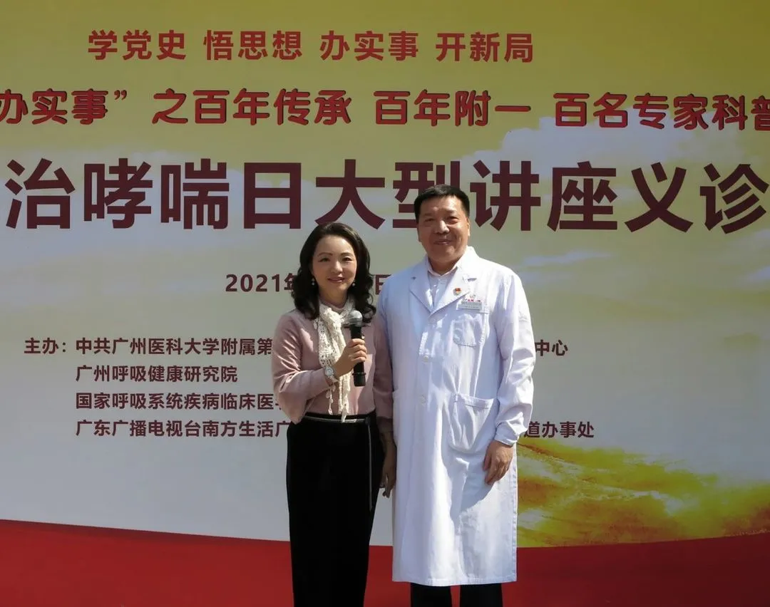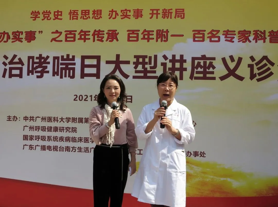2021年4月29日上午,为了让更多的哮喘患者得到规范的治疗和全程管理,揭示常见的哮喘误区,宣传正确的哮喘防治知识。在广州医科大学附属第一医院在新住院部,广州呼吸健康研究院副院长、国家呼吸医学中心副主任李时悦教授,广州呼吸健康研究院副院长、国家呼吸医学中心常务副主任、国家呼吸疾病临床医学研究中心副主任郑劲平教授,广州呼吸健康研究院副院长、广东省钟南山医学基金会副理事长黄庆晖教授等著名专家出席义诊活动。
