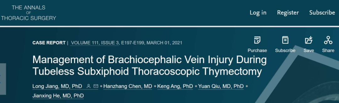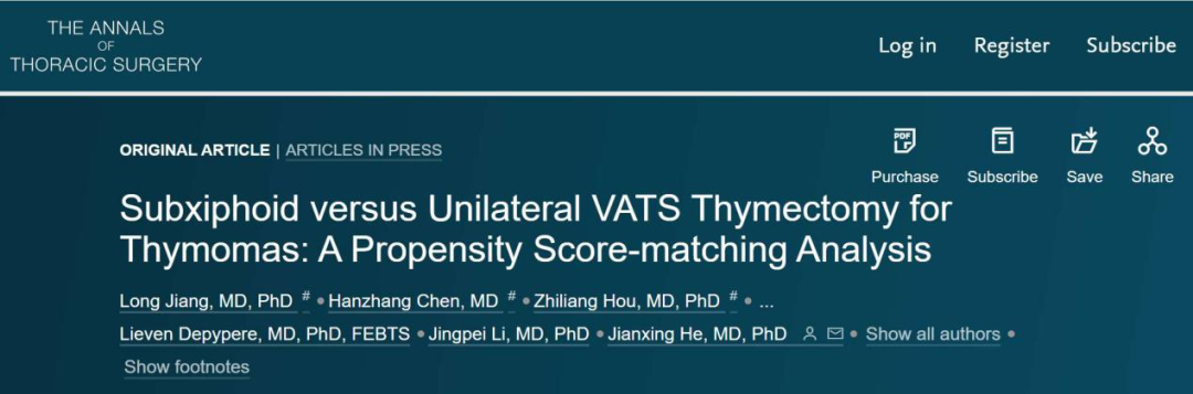 基于以上几点,胸腔镜剑突下胸腺瘤切除术是一种安全可行的方法。它一方面将原本的前纵隔肿瘤切除变得更加微创,实现小切口手术治愈,避免了患者的巨大创伤;另一方面极大地减少了患者的术后疼痛,加速了患者康复。此次,何建行教授团队发表胸腔镜剑突下胸腺瘤手术系列研究成果,正是针对传统手术方式而做出的努力与突破性的创新。