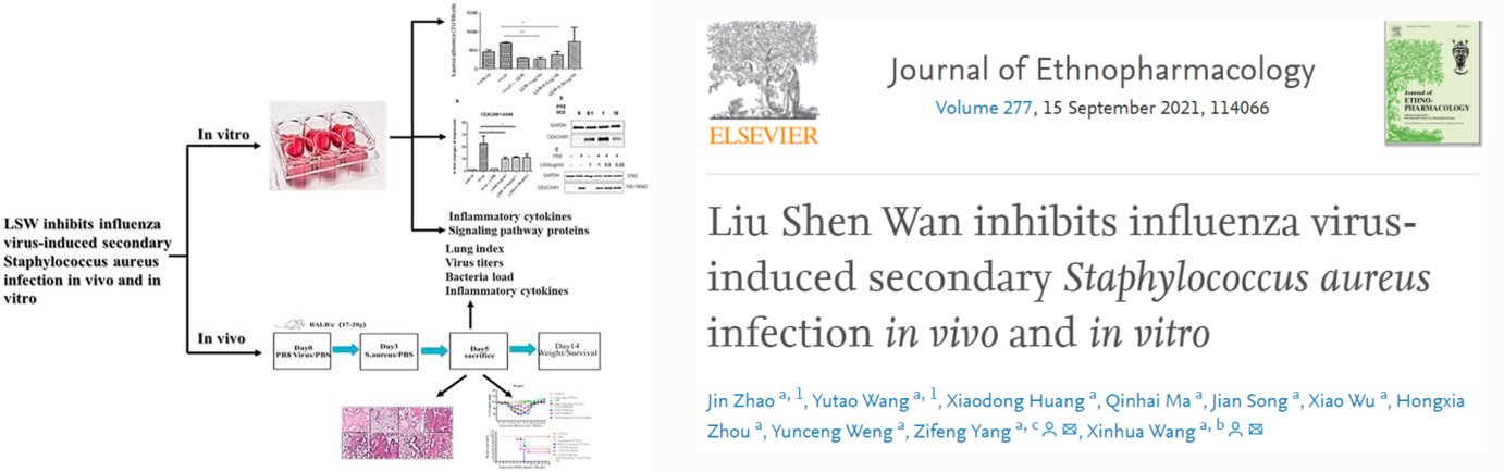 [3] Zhao J, Huang X, Wang Y, Ma Q, Song J, Wu X, Zhou H, Weng Y, Yang Z, Wang X. Liu Shen Wan inhibits influenza virus-induced secondary Staphylococcus aureus infection in vivo and in vitro. J Ethnopharmacol. 2021 Mar 22:114066. doi: 10.1016/j.jep.2021.114066. Epub ahead of print. PMID: 33766755.