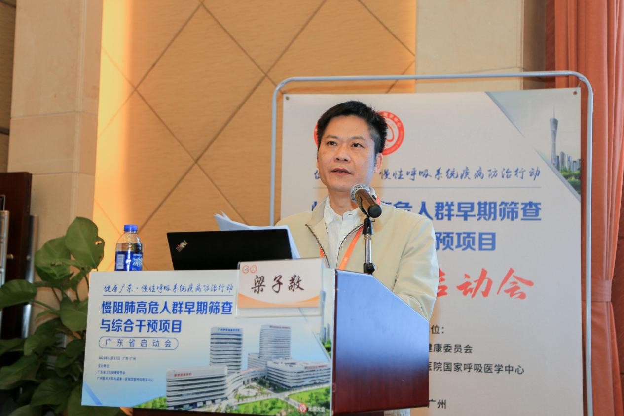 广医附一院梁子敬副书记在致辞中指出,广医附一院作为本次项目的省级技术指导单位,深感荣幸和责任重大。去年,附一院受广东省卫生健康委委托,负责组织实施全省基层呼吸系统疾病早期筛查干预能力提升项目,积极推进广东省基层医疗机构呼吸疾病规范化防诊治体系与能力建设项目,取得了明显的成效。在国家卫健委、省市卫健委的大力支持下,今年9月,广州实验室暨广州医科大学附属第一医院国家呼吸医学中心临床基地正式落成。广医附一院国家呼吸医学中心将坚持以人民健康为中心,发挥学科牵头作用,共同做好慢阻肺筛查工作,切实保障项目在广东省的顺利实施,为健康广东呼吸防治行动贡献力量。